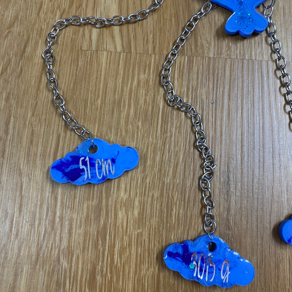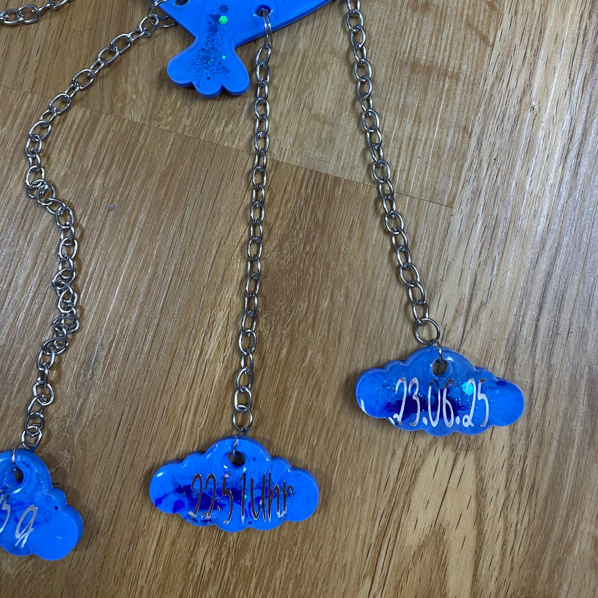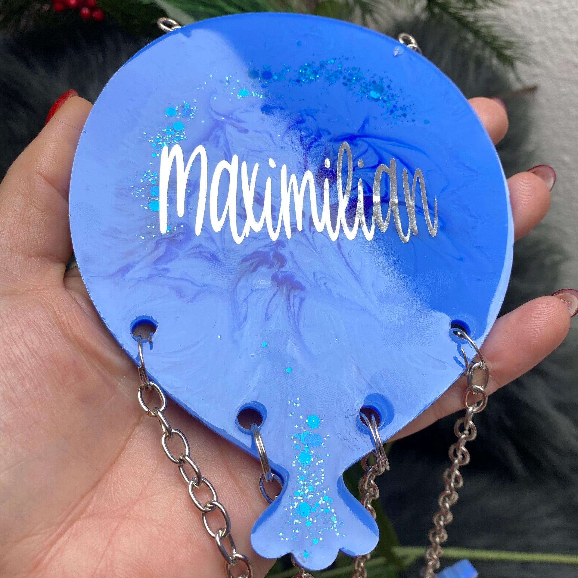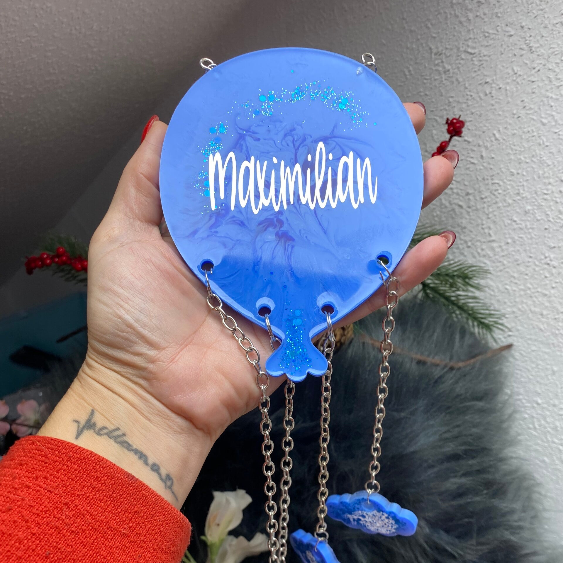 Babyballon, Mobile mit Namen und Geburtsdaten personalisiert aus Epoxidharz. Ein ideales Geschenk zur Geburt oder Taufe.