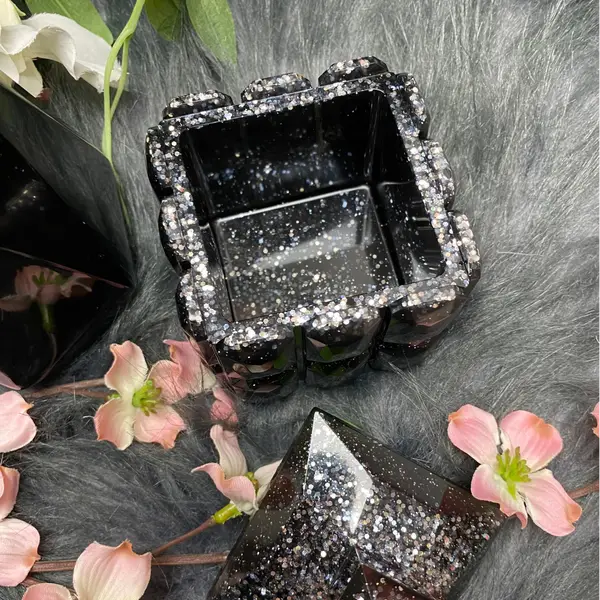 3-teiliges Set bestehend aus Seifenspender,Schmucktablett und Schmuckdose aus Epoxidharz
