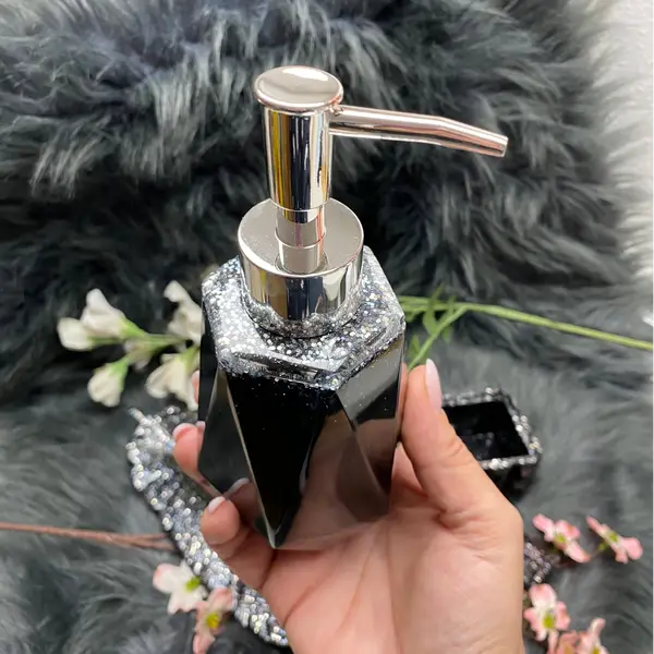 3-er Set Handgefertigter Seifenspender Schwarz silber