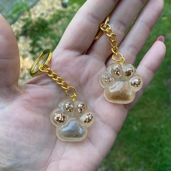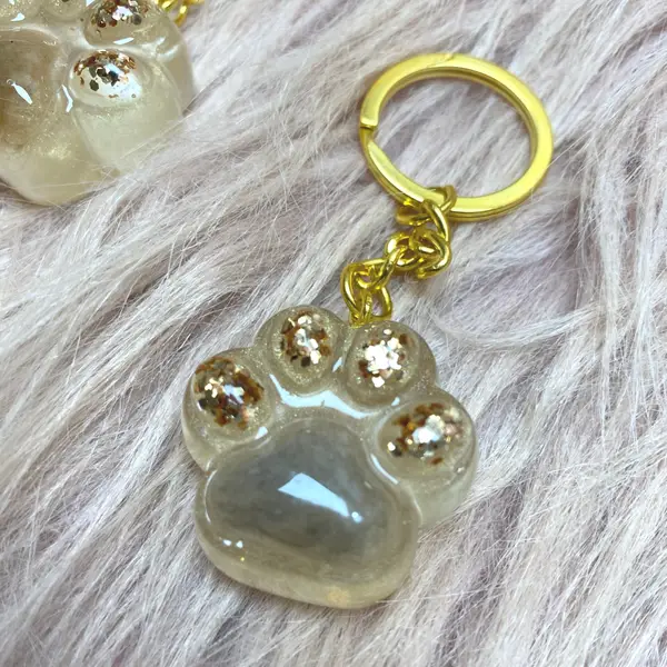 Niedlicher Schlüsselanhänger in Pfotenoptik aus Epoxidharz.