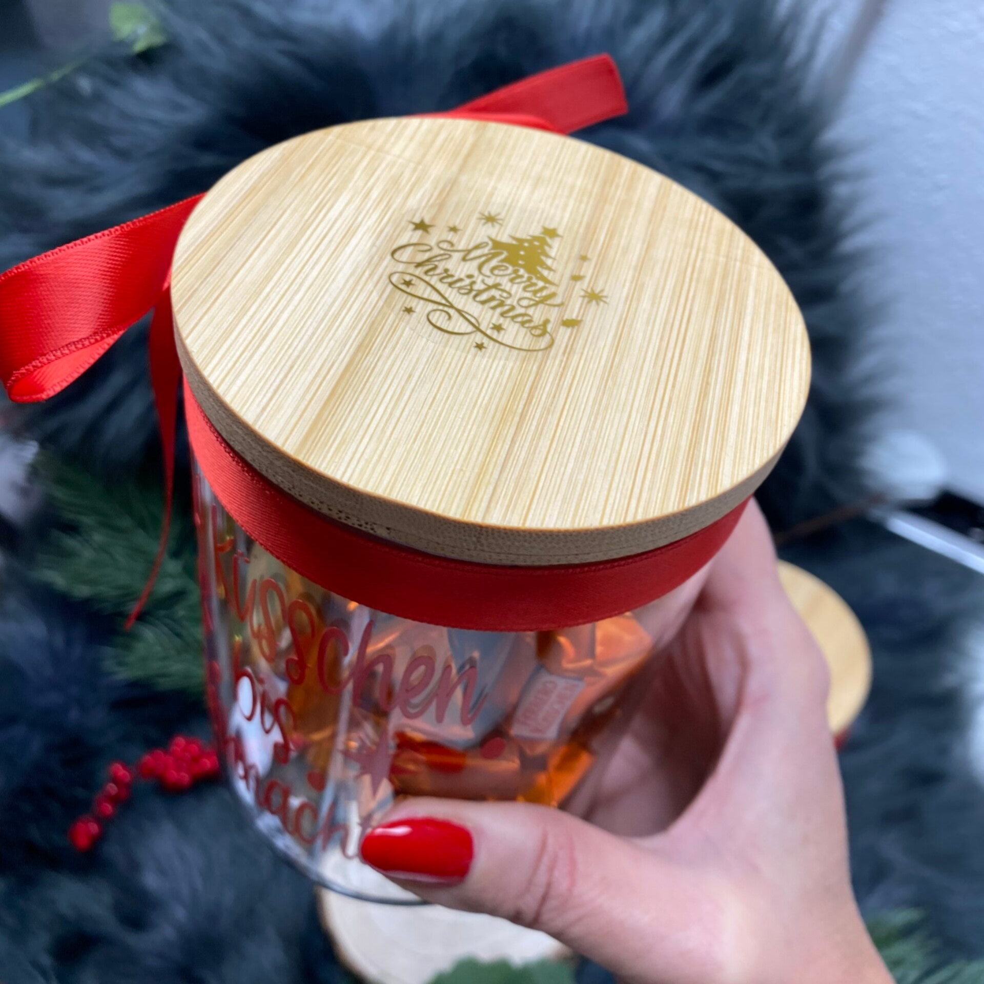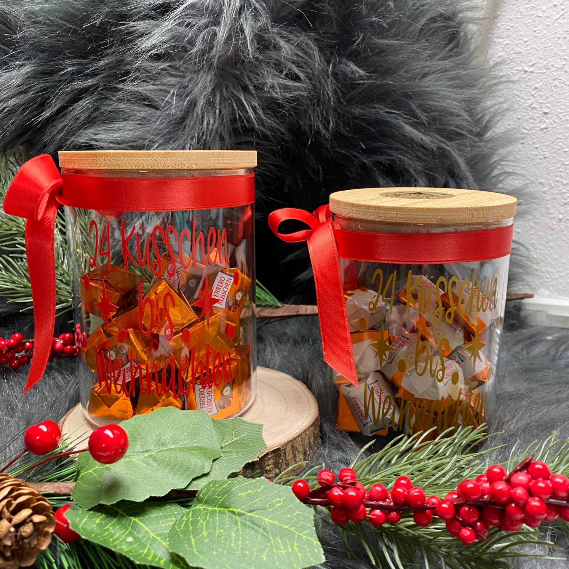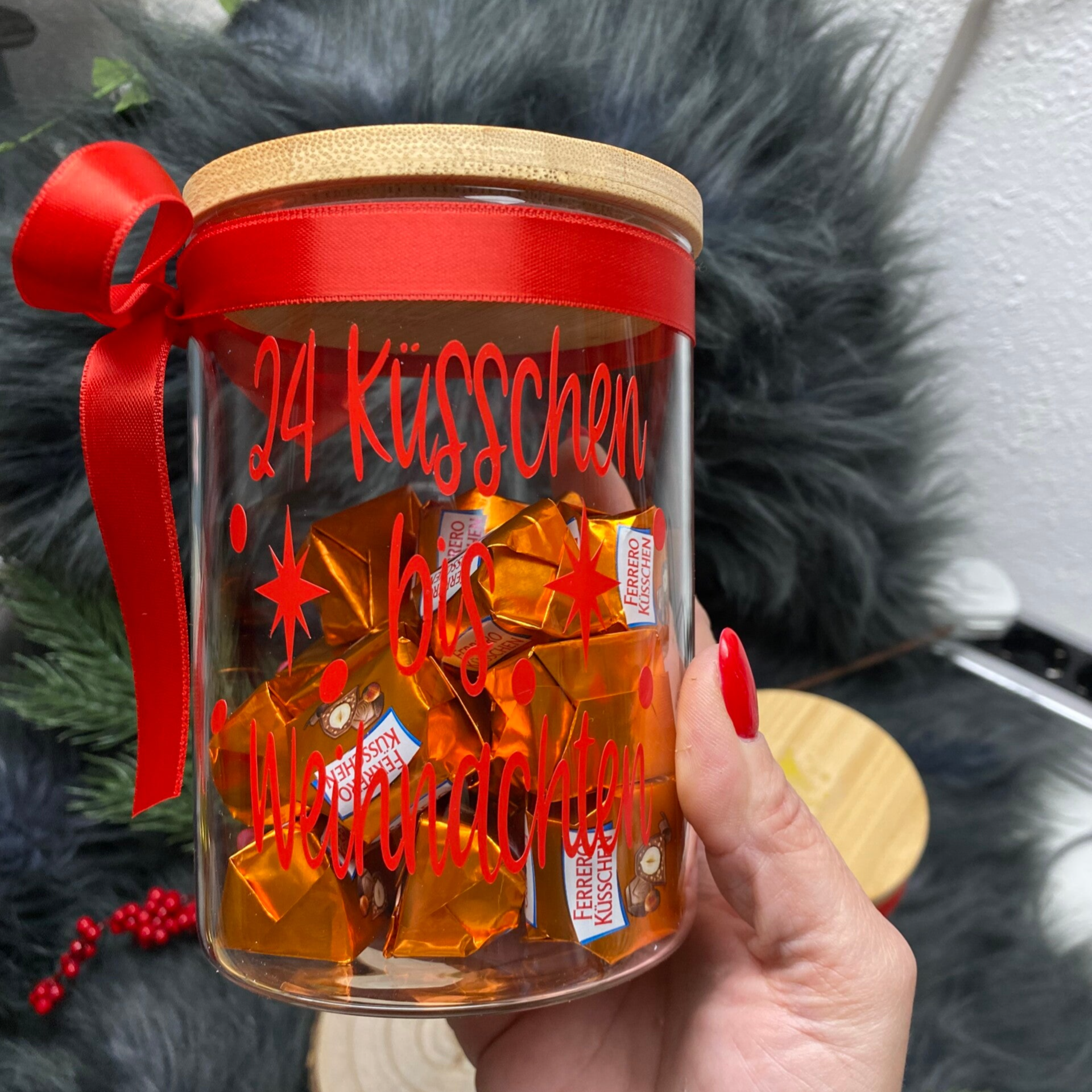 Jedes Glas ist handverziert mit dem Schriftzug „24 Küsschen bis Weihnachten“ – ein wunderschönes Adventsgeschenk für deine Liebsten oder dich selbst.