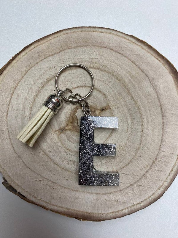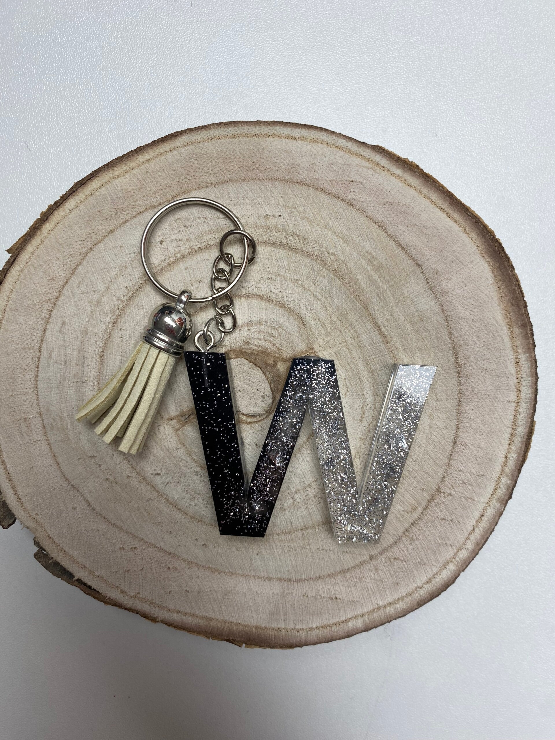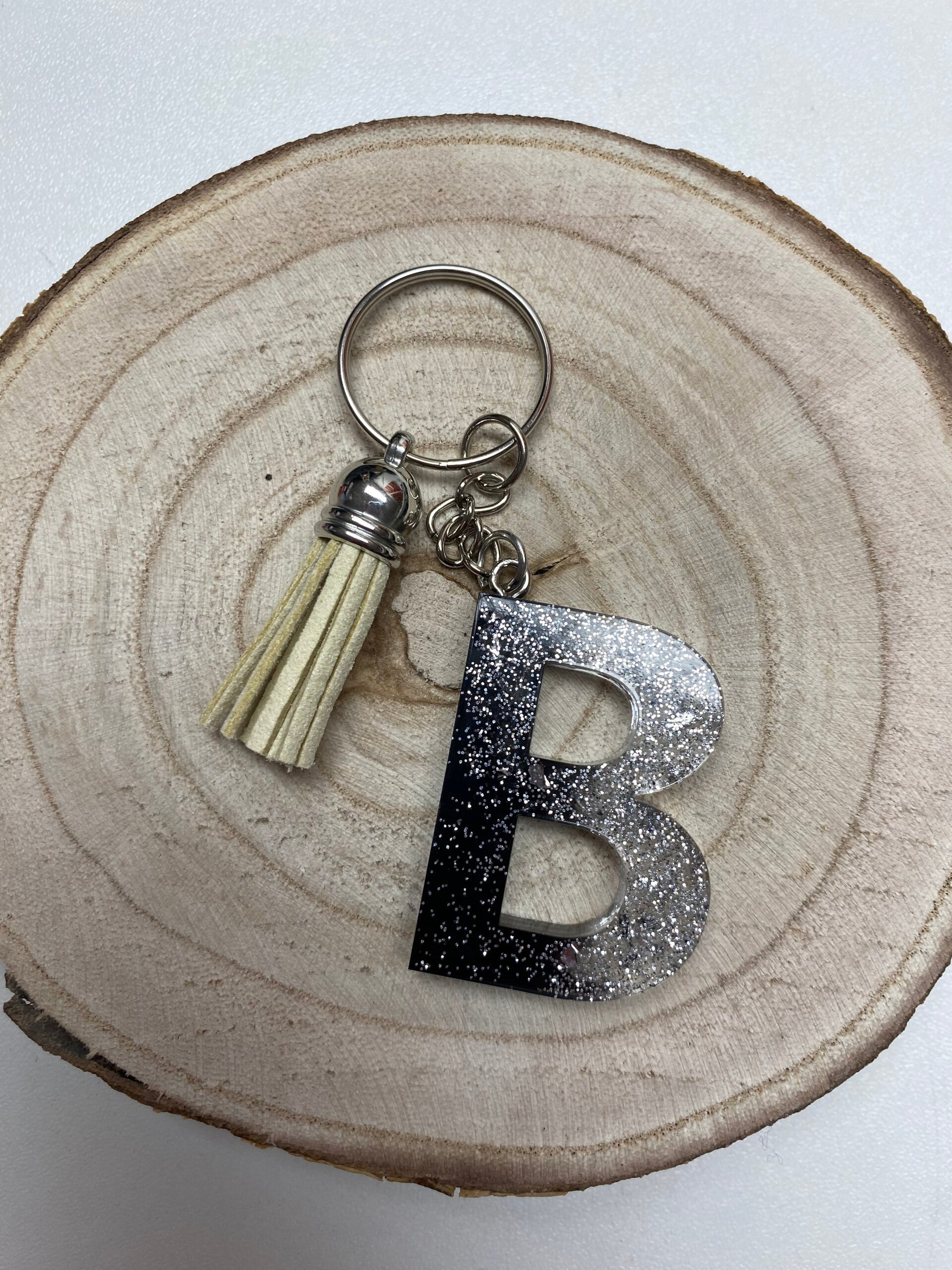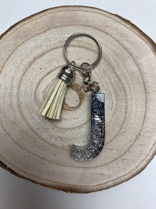 Handgemachte Schlüsselanhänger schwarz mit silber Glitzer.