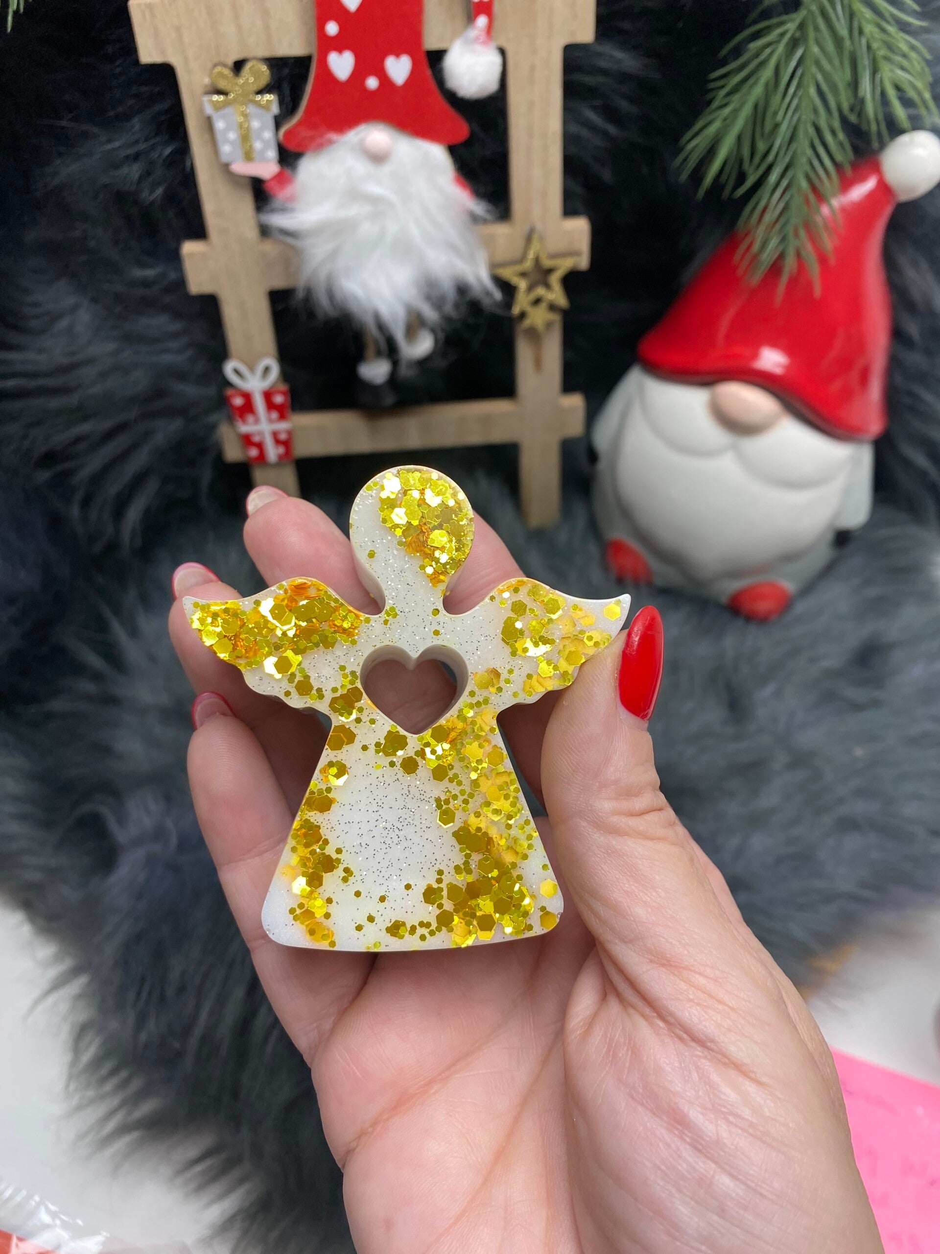 Jede Figur wird mit großer Sorgfalt in liebevoller Handarbeit gefertigt. Ob mit Glitzer, Trockenblumen, Metallicpigmenten oder schimmernden Flocken – du gestaltest deinen Engel ganz nach deinen Wünschen. Kein Stück gleicht dem anderen – echte Unikate, die von Herzen kommen.