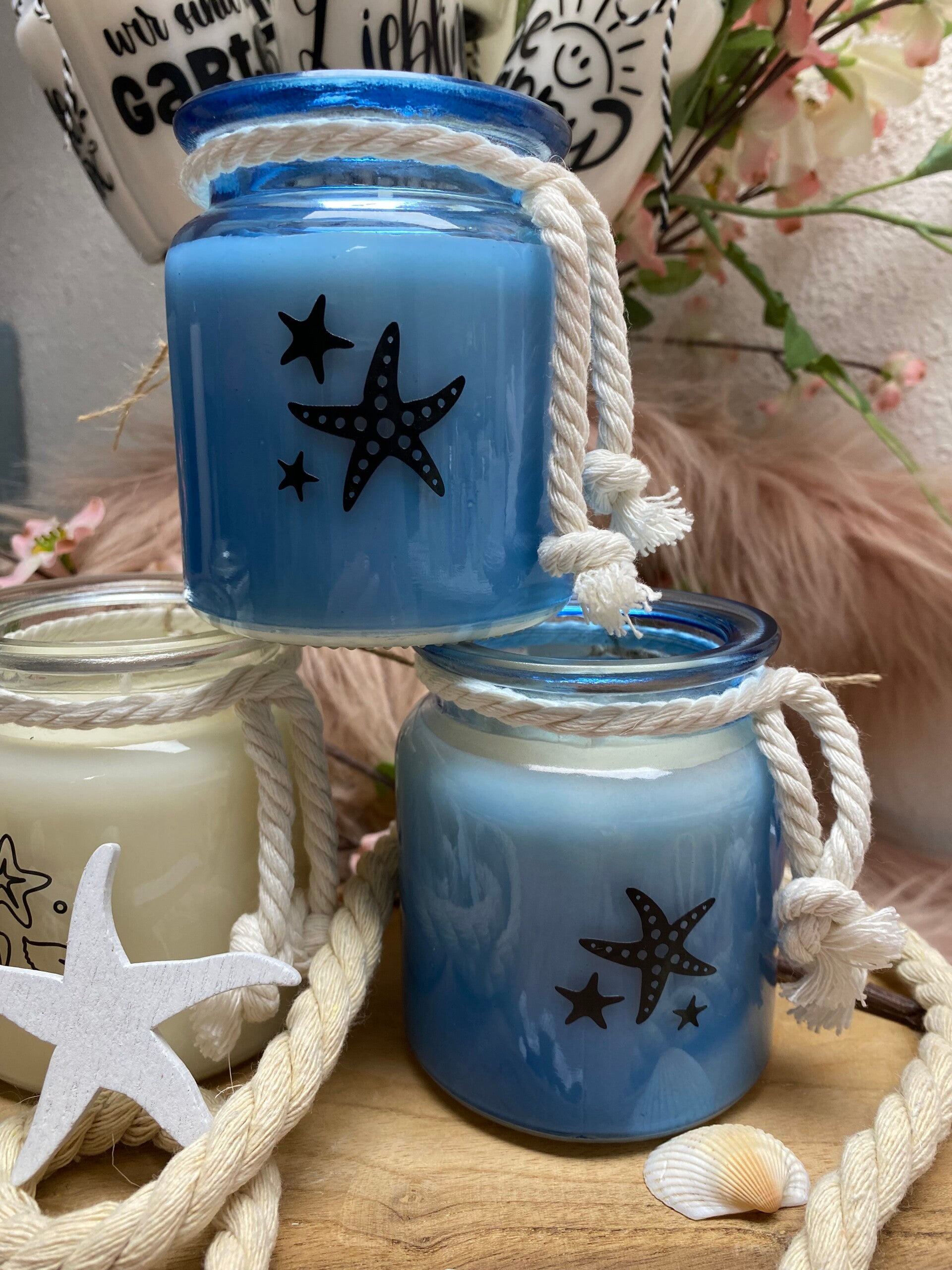 Sehr dekorative maritime Kerzen mit 2 verschiedenen Düften.