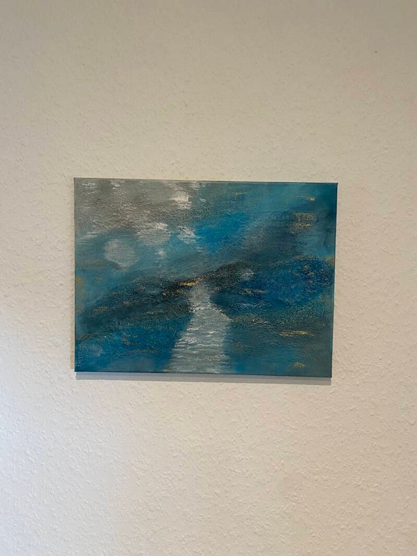 Dieses handgefertigte Unikat besticht durch seine tiefen Blau- und Teal-Töne, die in harmonischem Kontrast zu schimmernden Gold-Akzenten stehen. Die Besonderheit von "Rising Tide" liegt in seiner stark ausgeprägten Textur: Die reliefartige Oberfläche verleiht dem Werk eine faszinierende Tiefe und Haptik, die sich je nach Lichteinfall verändert.
